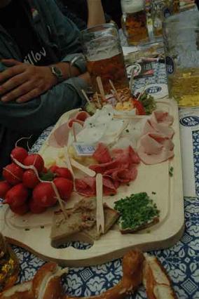 den Nebentisch – zwei verdutzten Batzis in Trachtenklamotten genau