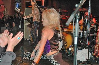 Sleaze-Rock-Fan nicht nur aufgrund ihres abgefahrenen Outfits im Auge
