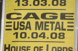 Dass es auch anders geht, beweisen die Amis um Frontmann Sean Robert Livingston Peck: Der Rob-Halford-Lookalike springt nach einem kurzen Soundcheck ins Publikum und legt mitreißend los. Gitarren? Yezzz!!! Fleischpaket Dave Garcia und sein Kollege Anthony Wayne McGinns feuern eine deutliche, klare Salve nach der anderen in den Raum! Sound? Wuchtig – es geht also doch! Show? Na klaro – Nieten, Leder, Metal satt!!! True Metal vom Allerfeinsten – mit einer klaren Ansage an Judas Priest: Wenn ihr meint, uns Metaller statt mit einem legitimen PAINKILLER-Nachfolger zu beglücken mit Sachen wie JUGILATOR oder DEMOLITION penetrieren zu müssen – es gibt andere, die den Fans das geben, was sie wollen: Cage!