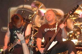 Dabei präsentieren auch die Schwaben aus der Peripherie Stuttgarts einen Neuzugang: den schwedischen Gitarristen Magnus Karlsson (Oben rechtes Foto – rechts) , der bereits mit Sänger Ralf Scheepers und Bassist Mat Sinner diverse Kompositionen für die beiden letzten Alben SEVEN SEALS und NEW RELIGION erarbeitete und eine frische Note in das ansonsten insbesondere von Scheepers souveränem Charisma geprägte Erscheinungsbild der Süddeutschen hineinbringt.
