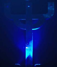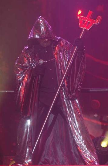 Nostradamus mit bedrohlich leuchtenden Augen (Scheinwerfer) entgegen.