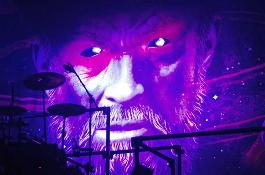 Backdrop glotzt uns – passend zum neuen Album NOSTRADAMUS, das in