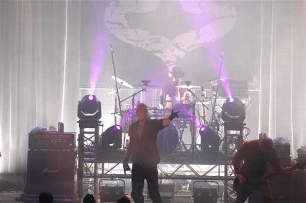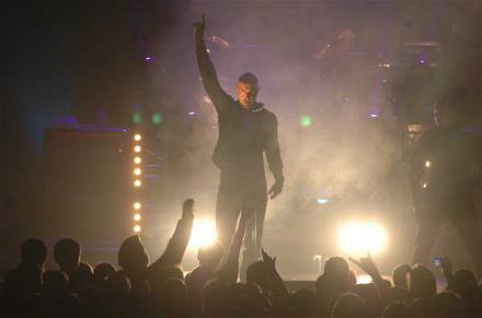 Und sollte es bis jetzt Zurückhaltung im Publikum gegeben haben: Die Münchner brechen - ihrem Bandnamen getreu - aus dem Stand heraus das Eis. Die üppige, immer wieder von zahlreichen Stroboskopeffekten flankierte Lichtshow unterstützt perfekt die monolithischen Stampfrhythmen, wirkt im Einklang mit diesen fast hypnotisierend. Mitten drin: der souveräne Frontmann Alexx Wesselsky, der mit sonorer Stimme seine Botschaften ins Publikum peitscht und dieses mit exakt kalkulierter Gestik zum Einfallen in die notorischen Stampfbeats animiert.
