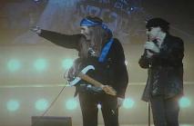 Schließlich heißt es: „Welcome To Humanity – this is hour one!” Und schon legt der deutsche Rock-Export Nummero uno furios mit dem Opener seines immer noch aktuellen Albums HUMANITY HOUR I los, um gleich erst einmal mit einem Evergreen-Potpourri die Fronten zu klären: ‘Coming Home’, ‘Bad Boys Running Wild’, ‘The Zoo’ (hier greift Gitarrist Matthias Jabs zur obligatorischen Voice Box), ‘No Pain, No Gain’ – knallharter Rock steht im Vordergrund, balladeske Momente stehen nach ‘Coast To Coast’ (der Mutter aller Instrumentals) und einem kurzen Toast auf das Geburtstagskind Jabs lediglich in Form von ‘Send Me An Angel’ und ‘Holiday’ zur Debatte, währenddessen Rudolf Schenker seine Starkstrom- gegen eine Akustik-Flying-V austauscht.