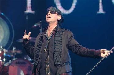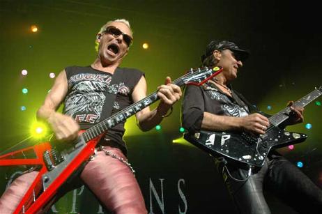 Form präsentierende Sänger Klaus Meine, Gitarrist Rudolf Schenker &