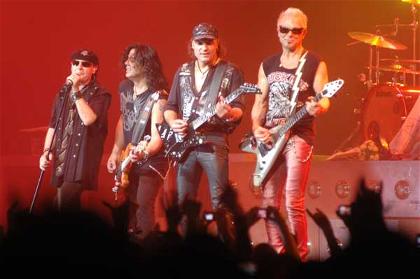 „Strasbourg – are you ready to Rock?“ Doch diese eh nur rhetorisch gemeinte Frage von Frontmann Klaus Meine (Foto unten links) stellt sich nicht im Geringsten. Denn Strasbourg ist schon seit Wochen „ready to rock“ - und mit 11.500 abgesetzten Tickets restlos ausverkauft. Überhaupt: Die Hannoveraner zählen Hard-Rock-technisch zu den Bands der Stunde, gastieren weltweit in ausverkauften Hallen größeren Kalibers und Stadien. Nur in Deutschland selbst tun sich die Krabbeltierchen schwer – aber der Prophet gilt bekanntlich im eigenen Lande nicht viel …