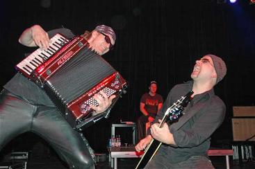 Und richtig: Spannt das mit den Handflächen angeschlagene Cajon (Percussionist Funky K.) schon den Bogen zu heftigeren Klängen, ersetzt das machtvolle Akkordeon von Small T. sämtliche Bässe einer potenziellen Metal-Combo mehr als respektabel, dröhnt diese sogar noch klar in die Ecke und an die Wand.