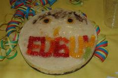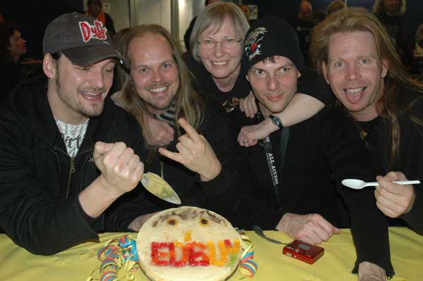 Band-Dunstkreis die rituelle Edguy-Torte anschneidet und die Bierchen