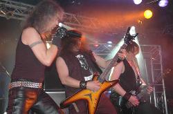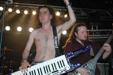 Der schottische Vierer Alestorm (Fotos oben) hingegen hat es schon zu etwas gebracht: nämlich zu einer eigenen Nische auf dem Sektor des Power Metals. Denn die Jungs fahren einen äußerst eigenwilligen Stil: Melodischer Teutonen-Metal à la Running Wild scheint hier mit Pagan Metal zu fusionieren – das musikalische Erscheinungsbild wird lyrisch und optisch von einem zünftigen Piratenimage abgerundet. Allerdings: Was im ersten Moment witzig und originell rüber kommt, verschleißt sich mit zunehmender Zeit in der Trivialität eingängiger Trinkhymnen. Das Ganze mutiert schließlich zu einem passablen Soundtrack für einen Wettbewerb im Delirium-Saufen - und da passen die schrägen Chöre, die wie Muppets im Vollrausch klingen, nur zu gut in das Klangbild der Mannen um Sänger/Keyboarder Christopher Bowes. Fazit: lustig, sehenswert – aber auf Dauer bewahrheitet sich, dass irgendwann jeder Spaß mal ein Loch bekommt, ein Witz nicht besser wird, wenn man ihn ständig wiederholt.