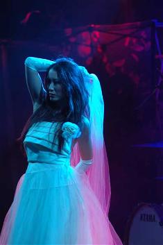 Eine Kombination, wie es passender kaum sein könnte, denn die Truppe aus der Domstadt zelebriert einen melodischen Heavy Metal, der die massenkompatibelsten Elemente des harten Rock perfekt miteinander fusioniert: Klänge, die zwischen finnischer Melancholie, dezent-opulentem Bombast und hymnischen Gothic Rock changieren, treffen auf traditionellen Heavy Metal, der nie zu „true“ (im Sinne von „platt“) wirkt. Zudem ist Ji-In Cho ein reizvoller Blickfang besonders für die Y-Chromosomenträger im Publikum und versteht es dank ihrer majestätischen Ausstrahlung, das Publikum einem gerade in Gothic-Kreisen populären Rollenspiel gleich um