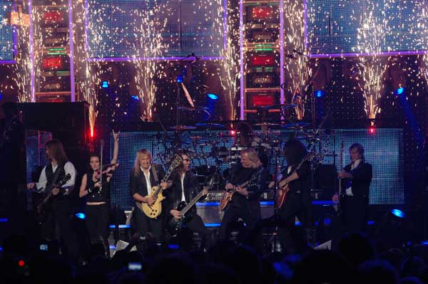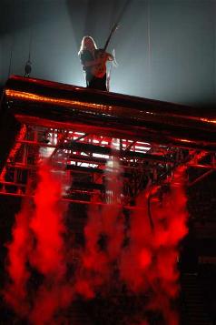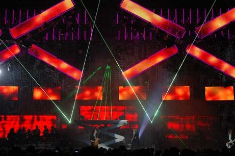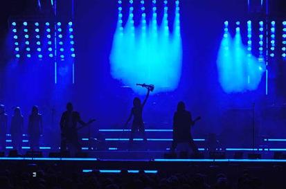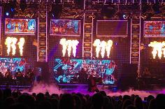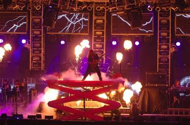 Neben der gigantischen Lichtshow, die ständig über die Bildschirme flimmert, gilt es, Spezialeffekte fast schon im Sekundentakt zu bewundern: An geeigneten Stellen rieselt Schnee aufs Publikum; Pyros satt vor allem im zweiten Teil der Show erwecken den Eindruck, nicht der Dritte, sondern der Vierte Weltkrieg sei ausgebrochen – die zahlreichen Laser kommen einem Sternenkrieg-Szenario gleich.