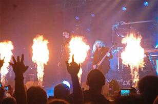 Was dann Kamelot auffahren, dürfte zu einer der gigantischsten Inszenierungen auf dem Club-Level avancieren: Bühnenaufbauten, die von der Sache her drei Aktionsebenen bieten, eine Lichtshow vom Allerfeinsten (meist stimm